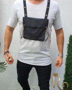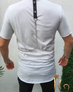 Tricou barbati slim fit lung, alb cu buzunare Street Style