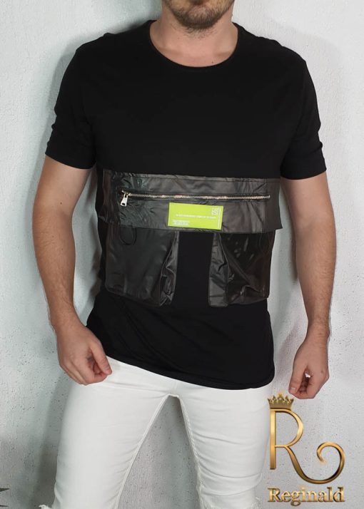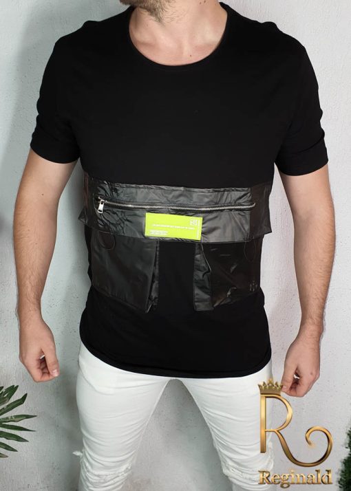 Tricou barbati slim fit lung, negru cu buzunare Street Style – TR79