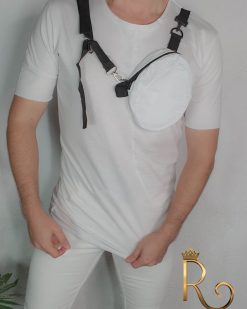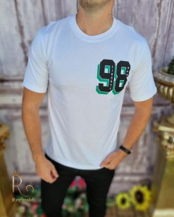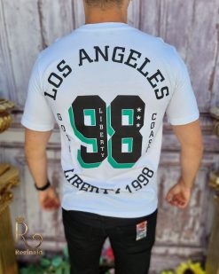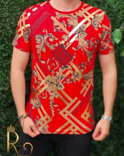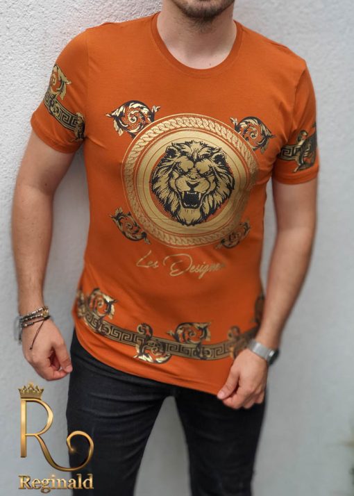 Tricou de barbati slim fit cu imprimeuri auriu si strasuri Le Designers