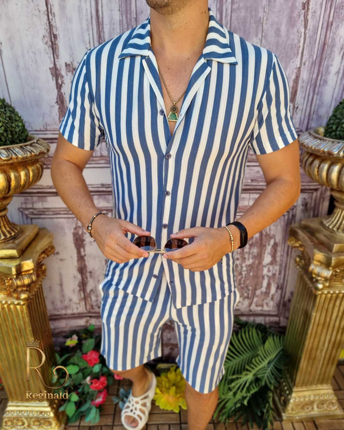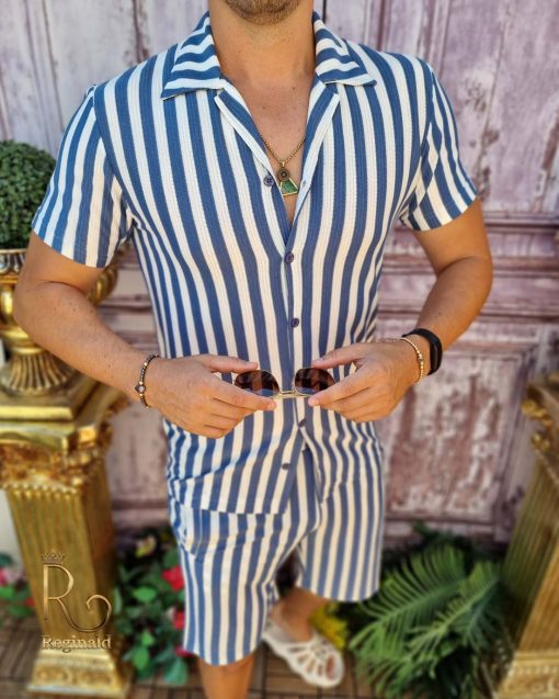 Tricou + Pantalon scurt, Alb cu dungi bleu – CMP132