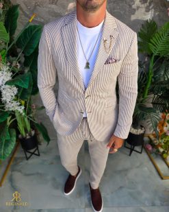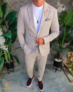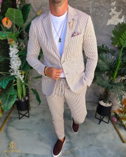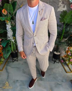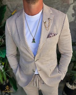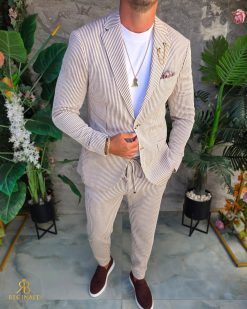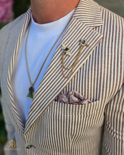 Costum de bărbați, Maro cu dungi albe : Sacou si Pantalon – C5293